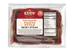 EDDY Fajitas are tender, flavorful proteins ready to cook on a stovetop, grill or in the oven. They are marinated in our authentic Tex-Mex fajita recipe and vacuum packaged for freshness. We offer skirt steak, boneless chicken breast and chicken thighs.